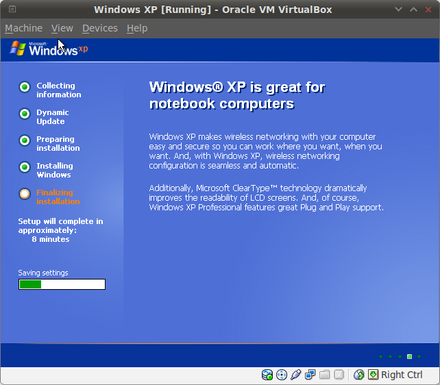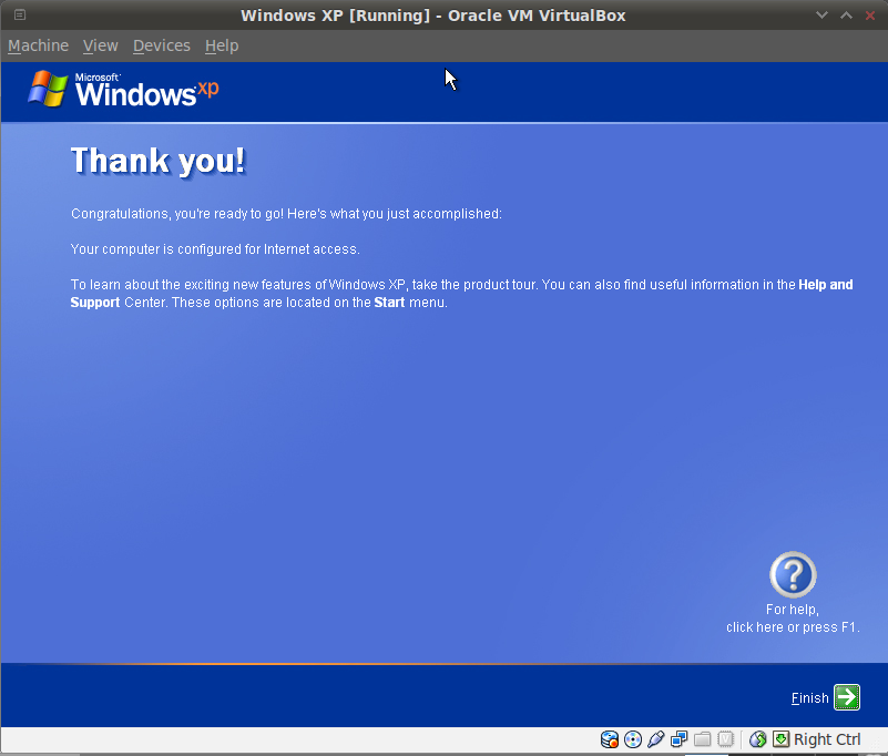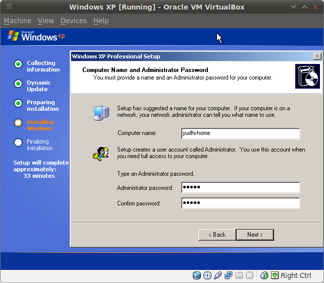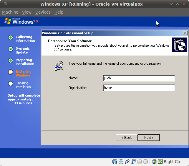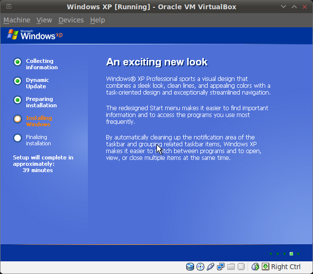 And there you go. Freshly installed Windows XP Professional SP3 in your Backtrack’s Virtualbox.