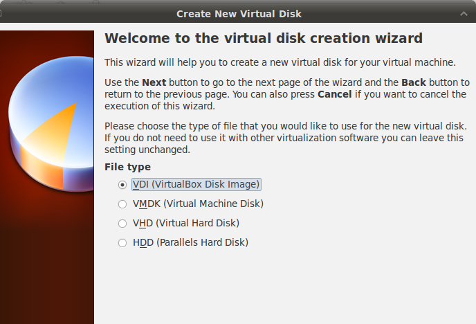 7. Choose “VirtualBox Disk Image”