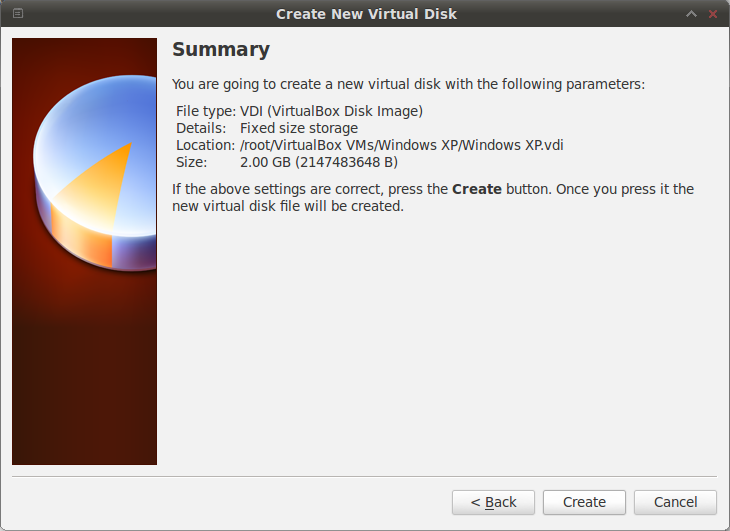 11. Summary for the Windows XP System that we create will appear after that. Click “Create”.