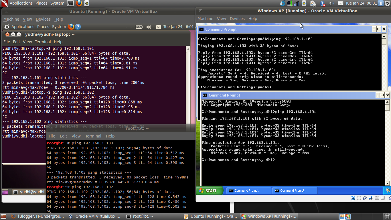 Ok, we have got ubuntu and windows installed on the backtrack’s virtualbox.