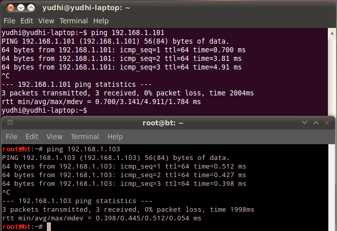 9. Test the connection by ping each address. When each system replies it means that the configuration is success.