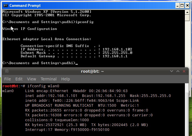 8. And the IP address on the windows xp.