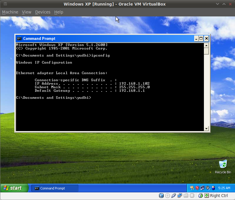 6. Start windows XP. And get an ip address through its network properties. (dhcp).