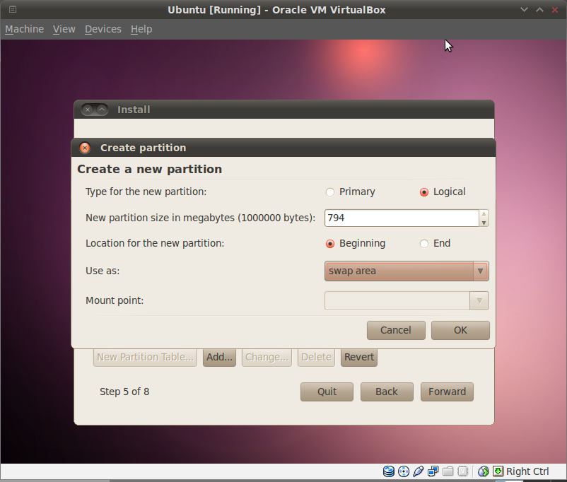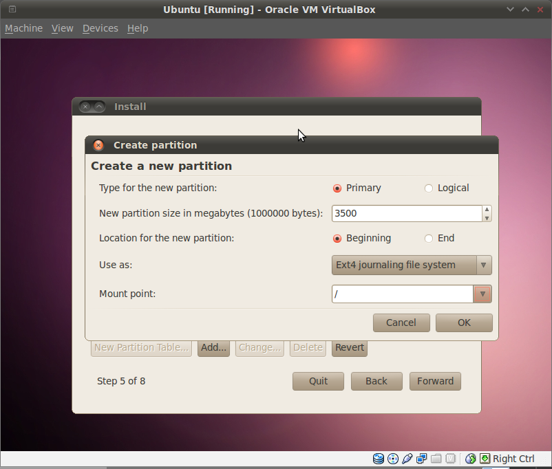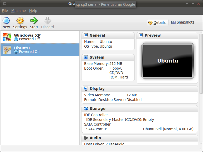 After installing Windows XP, now we continue to install Ubuntu in the Virtualbox.